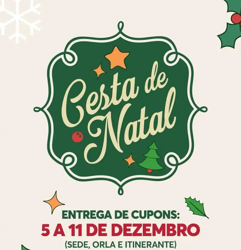 A entrega das cestas será realizada nos dias 12 e 13 de dezembro na orla e nas rotas itinerantes, enquanto na sede ocorrerá nos dias 14 e 15.