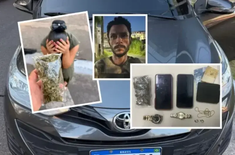 Durante a interceptação de um Toyota Yaris cinza, os policiais realizaram buscas nos ocupantes do veículo. Na bolsa da mulher, foi encontrada uma grande quantidade de maconha. O casal, identificado como Leonardo Pereira Cardoso, 35 anos, e Elizabeth Goiabeira Reis da Silva, 22 anos, recebeu voz de prisão no local.