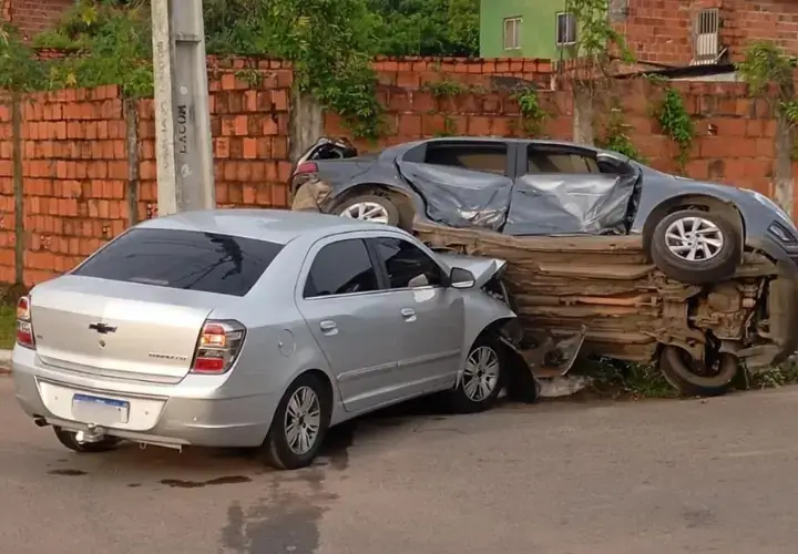 No cruzamento das ruas Santa Bárbara e Pantanal, o veículo do casal colidiu com um Voyage. O impacto foi tão forte que um dos carros capotou e ficou sobre o outro.