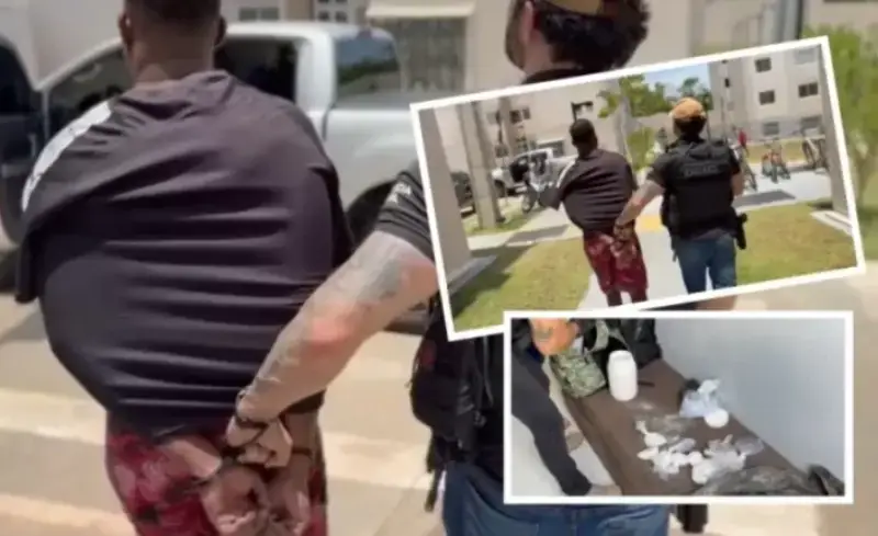 De acordo com as informações, os policiais estavam cumprindo um mandado de prisão por tráfico de drogas quando o suspeito tentou escapar da abordagem. Em uma tentativa desesperada de fuga, “Do Job” pulou do terceiro andar do prédio e invadiu uma residência no térreo. A ação, no entanto, foi rapidamente frustrada pela atuação coordenada das equipes, que conseguiram capturá-lo ainda dentro do condomínio.