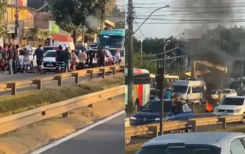 Na manhã deste sábado (15), uma manifestação interrompeu completamente o tráfego na BA-099, na região de Abrantes, próximo ao Posto Shell, antes do Shopping Busca Vida. Segundo informações recebidas, participantes da mobilização colocaram pneus ao longo das faixas internas e também nas pistas principais que seguem sentido pedágio, impedindo totalmente a passagem dos veículos.