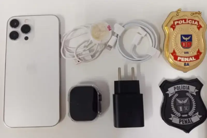 O escâner identificou um iPhone e um cabo de dados escondidos no bolso do fardamento do monitor. Durante uma revista mais detalhada em seu armário, foram encontrados também um relógio digital, um carregador e uma base de carregamento sem fio, todos apreendidos.