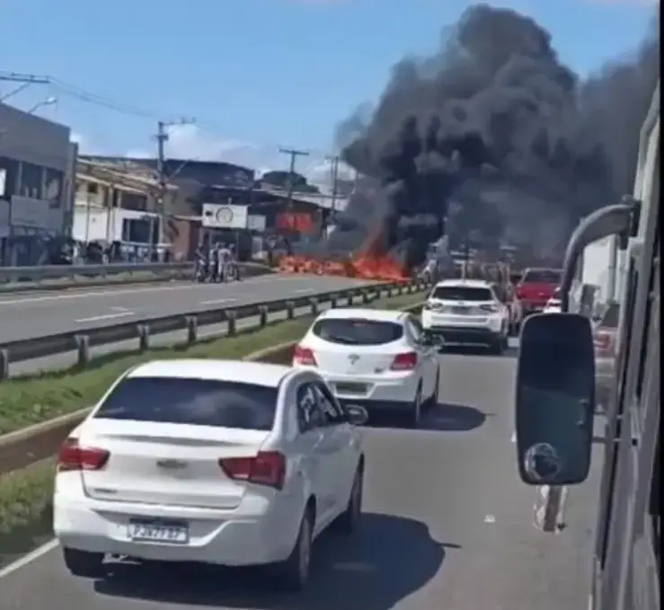 Para impedir o tráfego, os manifestantes montaram barricadas com pneus e pedaços de madeira, chegando a incendiar parte do material. O bloqueio aconteceu a poucos metros da praça de pedágio administrada pela concessionária Litoral Norte, gerando um longo congestionamento e deixando motoristas sem alternativa para seguir viagem.