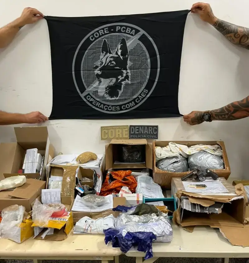 Durante a checagem dos pacotes, com auxílio do canil da Core, os agentes localizaram encomendas suspeitas destinadas a Salvador e a outros estados do país. O material retirado de circulação impressiona: cerca de 6,5 kg de maconha, 282 g de cocaína, 70 g de drogas sintéticas, cogumelos, cigarros eletrônicos, 30 caixas de anabolizantes e uma arma de fogo.