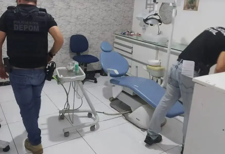 Durante o cumprimento dos mandados de busca e apreensão, agentes encontraram itens próprios de consultórios odontológicos como alicates, pinças, afastadores bucais, maletas profissionais e até máquinas de cartão, indicando que os atendimentos eram cobrados e exercidos com estrutura clandestina. Além disso, as equipes identificaram ambientes inadequados e sem condições sanitárias compatíveis com a legislação, o que reforça o risco à saúde da população.