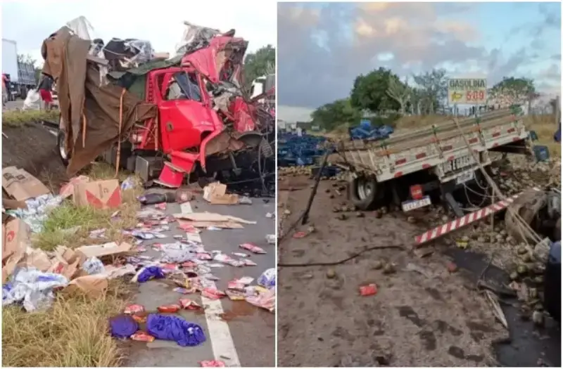 De acordo com a Polícia Rodoviária Federal (PRF), a batida ocorreu por volta das 5h30. As vítimas foram identificadas como Emanuel Antônio Rodrigues, de 43 anos, e Aguimar Iuri Dutra Silva, de 21 anos, ambos condutores dos veículos. O impacto foi tão forte que os caminhões, que transportavam frutas e café, ficaram completamente destruídos.